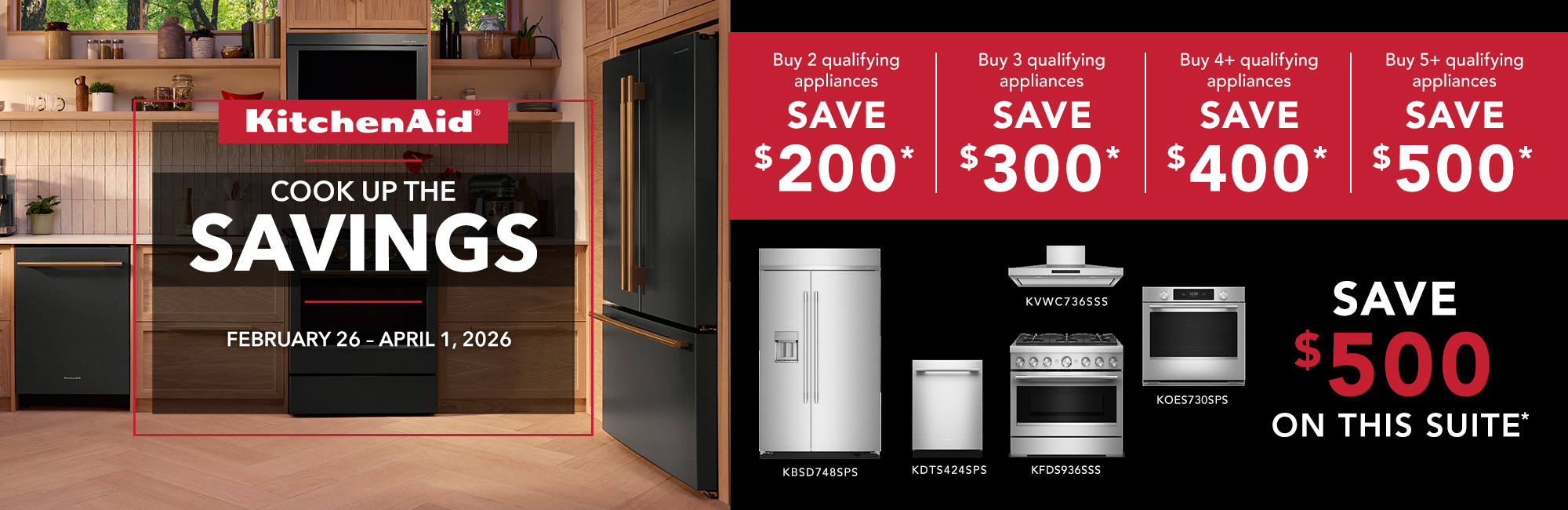 Buy 4 qualifying appliances SAVE $400*, Buy 5+ qualifying appliances SAVE $500*