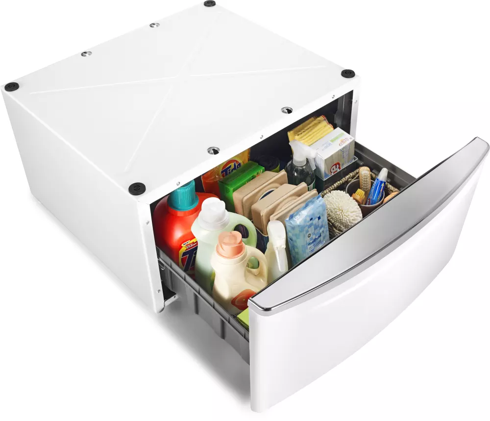 - Pedestal Drawer Offers a Convenient Area to Store Laundry Essentials