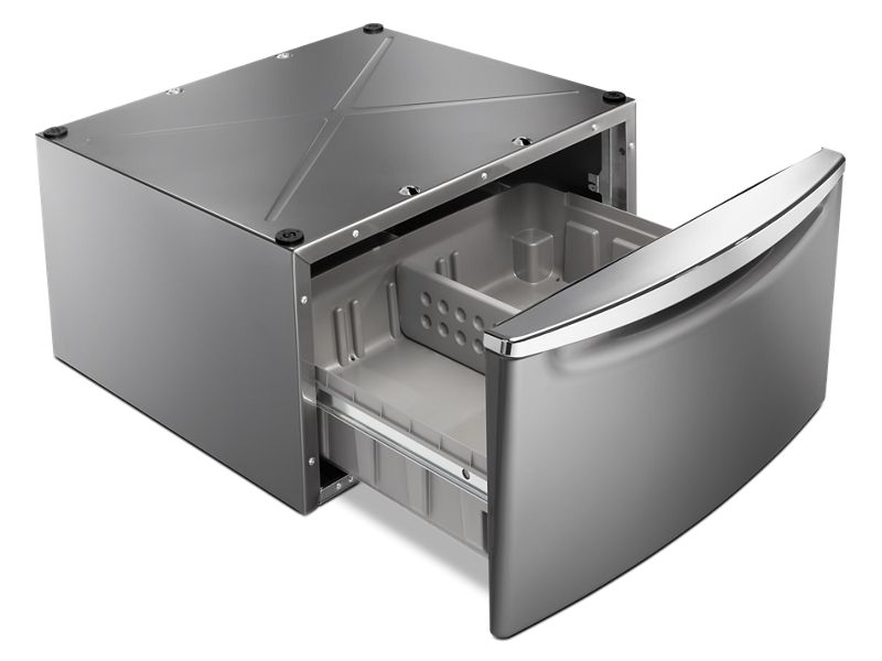 - Pedestal Drawer Offers a Convenient Area to Store Laundry Essentials
