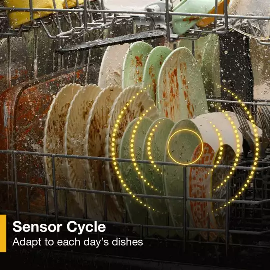Don’t stress over settings. Sensor Cycle uses an AI Intelligent Wash designed with sensors that adjust wash action based on soil level, load size, and water temperature to ensure your dishes come out clean
