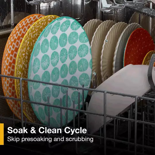 Soak & Clean Cycle combines presoak and wash into one cycle that dissolves stuck-on food so you can skip the extra soaking and scrubbing.