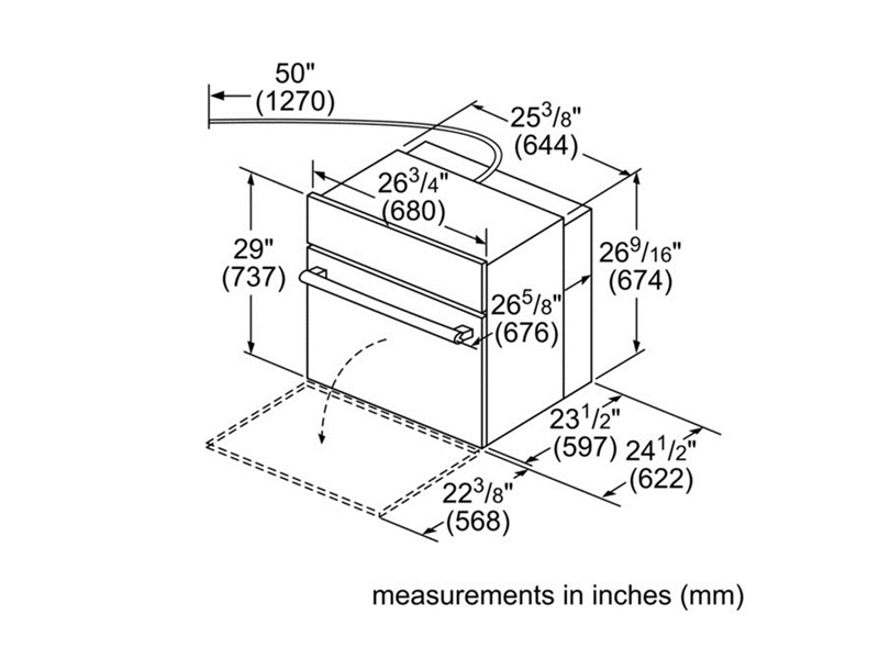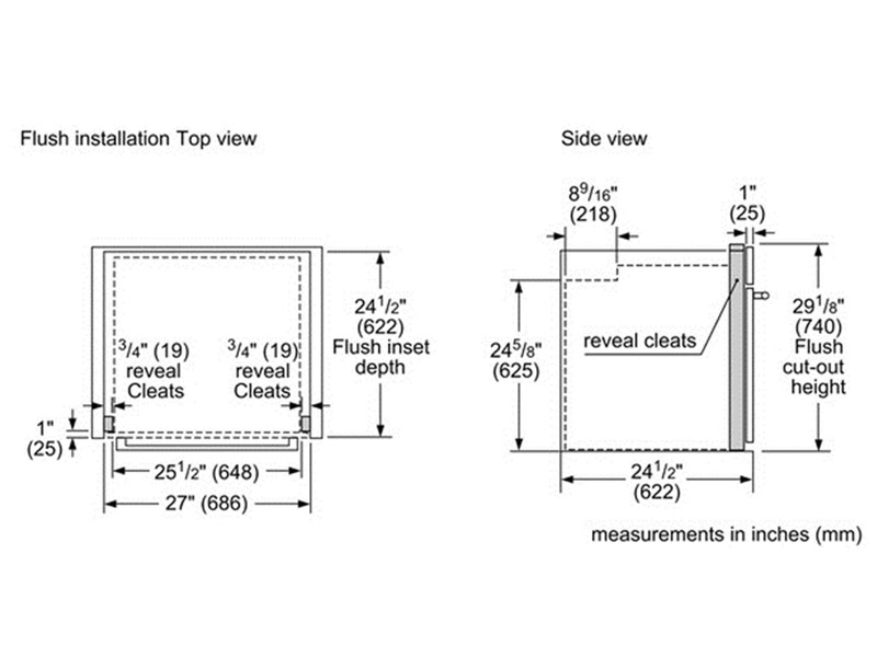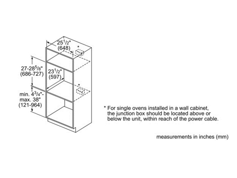 | Required cutout size (HxWxD) (in) | 27' - 28 5/8' x 25 1/2' x 23 1/2' |