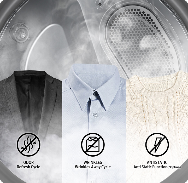 Refresh and smooth out clothes quickly without doing a full wash or dry cleaning items. The Multi Steam function infuses your laundry with steam to freshen garments and keep them smelling great. It reduces odors and static, and also smooths out wrinkles in clothes*, so they need less ironing.