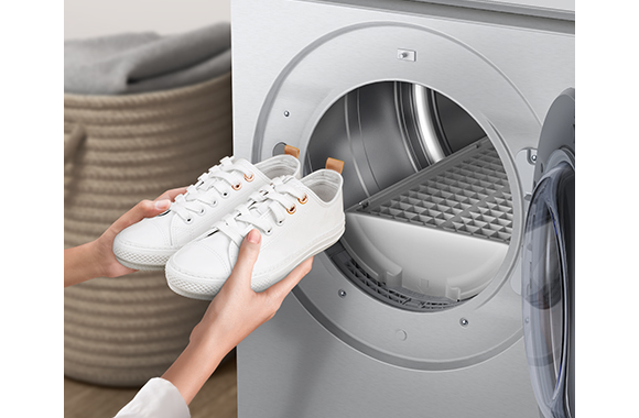 Protect delicate and special-care items like sneakers and sweaters by high impact tumbling. Simply insert the Drying Rack, place your items on it and everything stays safely in place, while it is dried gently. So there’s no loud banging or worry about clothes being stretched.