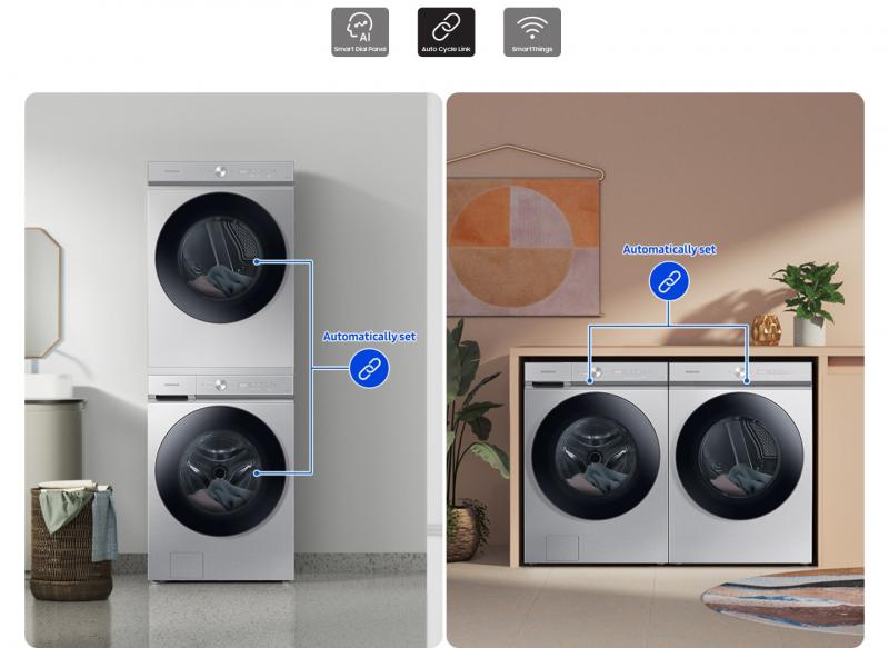 Laundry reimagined with a clean, flat-panel design for a washer so beautiful, you’ll want to show it off. Have the flexibility to install your washer and dryer either side by side or stack it with the new Stacking Kit* to complete the seamless look.