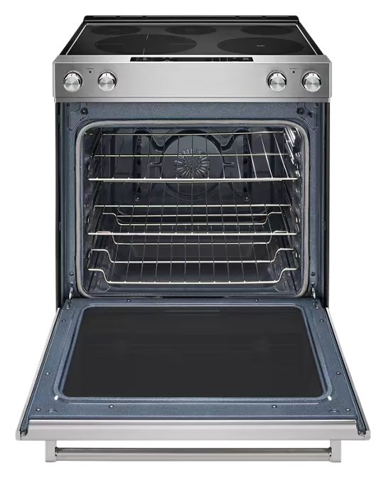This electric slide-in range provides a large cooking capacity that easily handles multiple dishes at once.