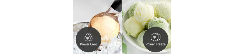 Enjoy rapid cooling performance. At the touch of a button, Power Cool blows intensely cold air into the fridge to quickly cool your groceries or favourite drinks. Power Freeze delivers a fast blast of cold air into the freezer. It’s great for freezing or firming up frozen food and making ice.