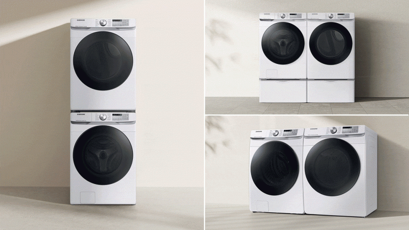 Give your home a sleek and modern look with a seamless design. This dryer has a shallow depth*, so it fits within your existing laundry space without sacrificing any capacity thanks to our new, wider drum. Also, a new control panel design provides better visibility, so it is easy to use even when stacked.