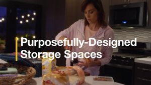Wide, flat items like brownie pans, lasagna and pizza boxes stay tucked out of the way in this space designed to keep them safe from stacking.