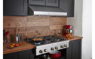 Pairs with KitchenAid® Commercial-Style Ranges, Rangetops and other models with total burner outputs up to 90,000 BTU.