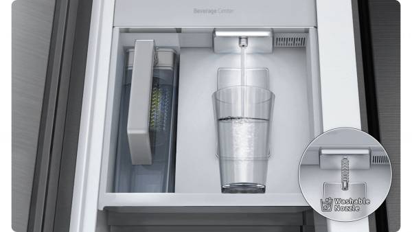 The removable, BPA Free* 1.4L Autofill Water Pitcher fills up automatically with purified water when the fridge door is closed. There is also a built-in infuser to create flavoured water.