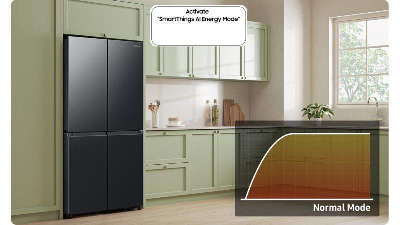 Reduce your energy use by up to 10%* with AI Energy mode in SmartThings Energy**. If your estimated monthly electricity bill exceeds your preset target, it gives you an option to save energy***. It optimizes the compressor speed and defrost cycle, based on your usage pattern and surroundings.