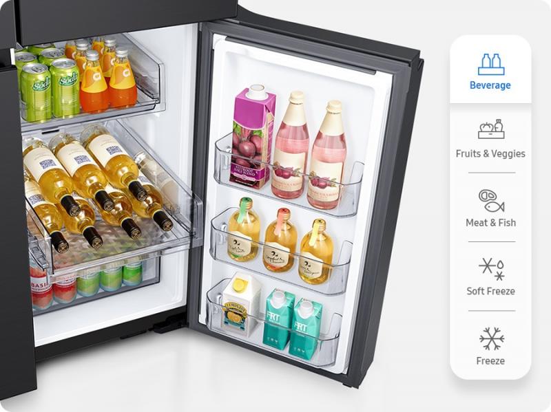 Keep different foods and drinks at the optimal temperature, so they stay fresh and tasty. The independently controlled CoolSelect+ has five pre-set temperature modes: Freeze (-8 - - 5°F/-23 - -15°C), Soft Freeze (23°F/-5°C), Meat & Fish (30°F/-1°C), Fruits & Veggies (35°F/2°C) and Beverage (39°F/4°C).