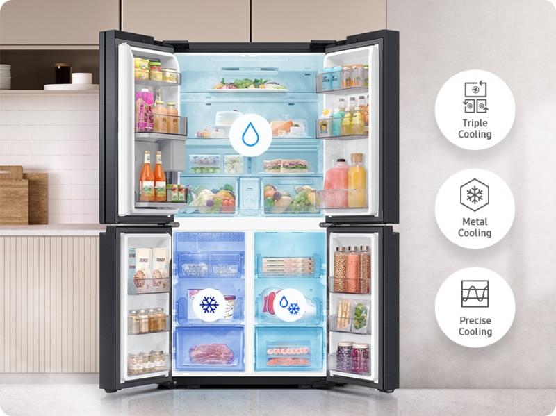 Keep food fresh for a long time and preserve its natural flavor and aroma. Triple Cooling supplies cool air independently to the 3 compartments in the fridge and freezer. It maintains the optimal temperature and humidity in each and ensures that your food is not tainted by other strong smells.