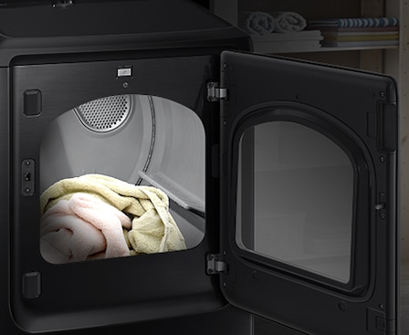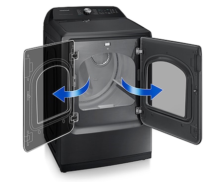 Choose the door swing direction based on your laundry room layout for maximum convenience. You can change the opening direction of the reversible door, so it fits the space, its surroundings, and your way of doing things. And walls won't get in the way, so you can install a dryer almost anywhere!