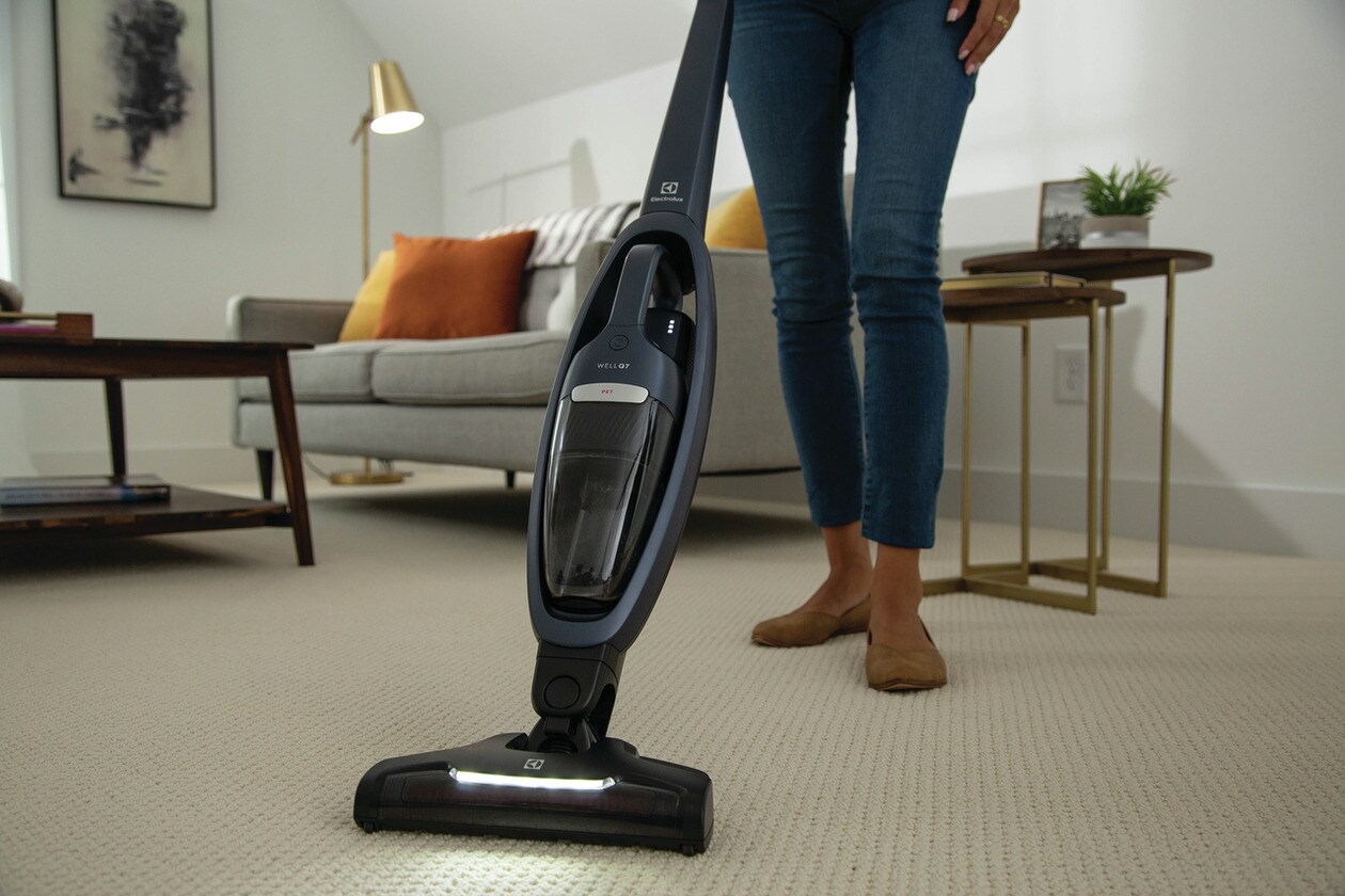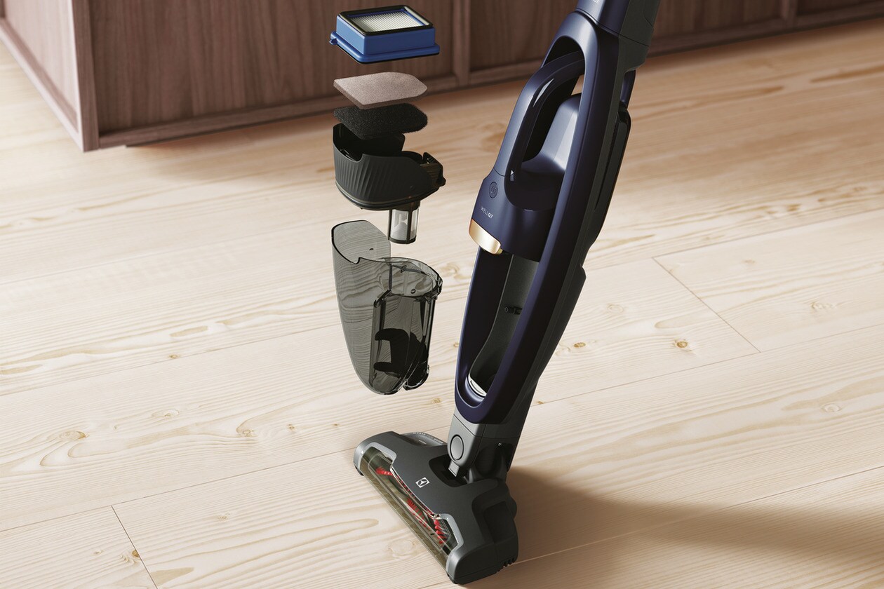 The Electrolux WellQ7™ Cordless 2-in-1 vacuum features a 5-step filtration system with integrated axial cyclonic technology that efficiently separates dirt and dust from the air helping to reduce clogging and provide a consistent experience throughout the entire clean. With the detachable handset you can easily attach the PetPro+ Nozzle to remove pet hair from furniture and other upholstered surfaces.