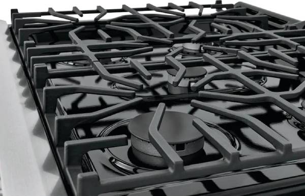 Move heavy pots & pans without lifting with continuous corner-to-corner grates.