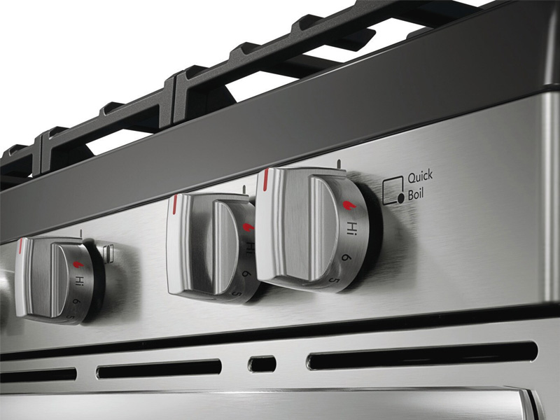 Moving heavy pots and pans across the cooktop is easier with continuous edge-to-edge grates.