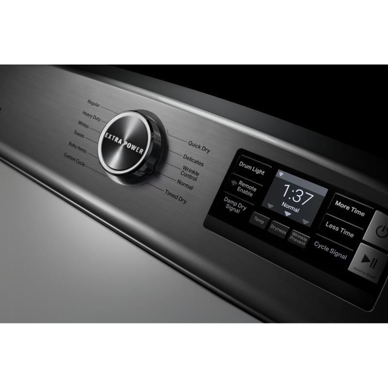The Extra Power button boosts drying power on any cycle by extending time, heat and tumbling. One push helps prevent underdrying by getting thick fabrics, pockets and seams drier the first time.