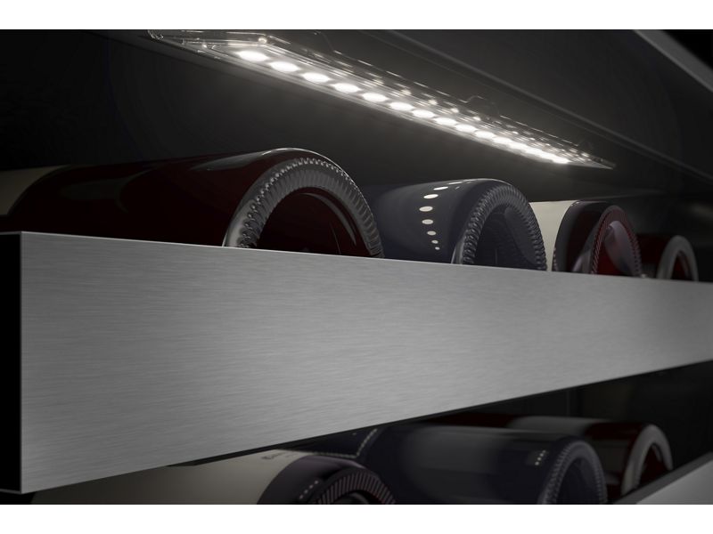 This 24" Undercounter Wine Cellar with Full-Extension Metal-Front Racks stores up to 46 standard Bordeaux-size bottles. Motion-Activated LED Lighting turns on as you approach, making it easy to see what’s inside. Fully Flush Installation with Hidden Hinges provides a built-in look within cabinetry.