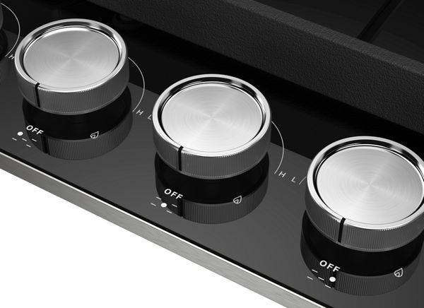 Professionally-inspired dishwasher-safe knobs are easy to clean and allow easy adjustment of cooktop settings, offering responsive, flexible control.