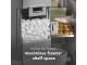 maximizes ice storage while maximizing space on freezer shelves by moving the ice bin to the door. The bin holds up to 4.3 lbs of ice, is clear so you can quickly see ice levels and can be removed to easily fill pitchers or coolers.