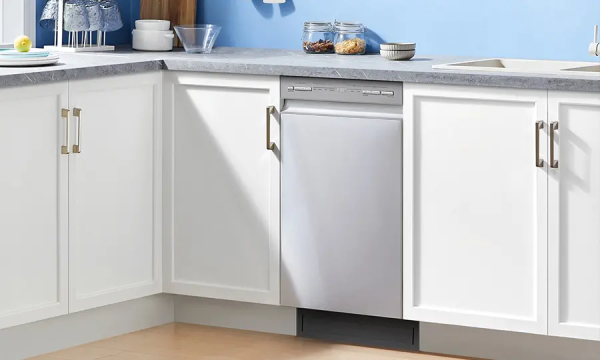 - This 18" wide dishwasher fits perfectly in small kitchens while offering ample space for your dishes, making it ideal for tight spaces.