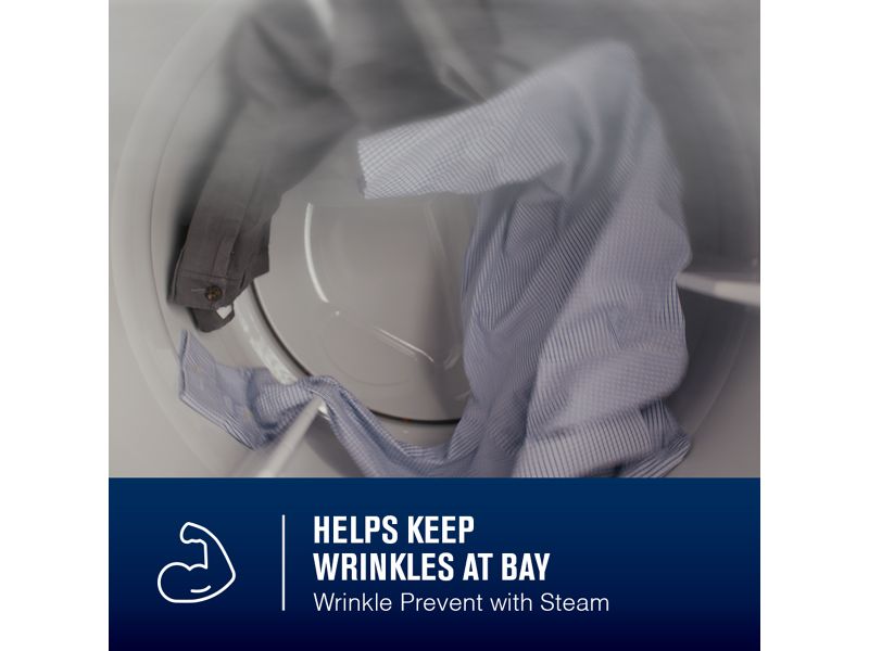 With the Wrinkle Prevent option with Steam, the dryer tumbles your clothes for up to 150 minutes after the cycle has ended to keep wrinkles at bay.