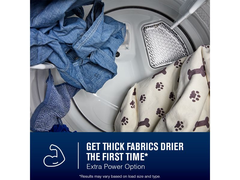 Extra Power option boosts drying power to get thick fabrics drier the first time.**Results may vary based on load size and type.