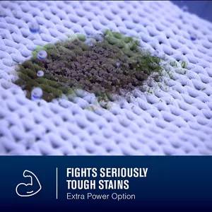 Extra Power option boosts stain fighting on any wash cycle with an intense pre-wash and extra agitation so you can walk away while stains wash away.