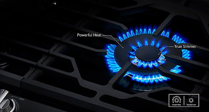 A high power, 22 K Dual Burner provides powerful heat and precise control quickly going from a high heat to a true simmer for intense and even cooking, or turn it right up to boil water in a flash and cook food faster.The Power Boost function can reduce cooking times with an extra boost of heat.