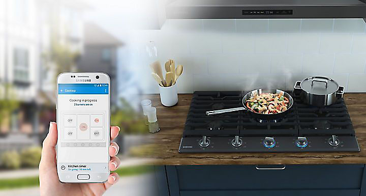 Wi-Fi Connectivity maximizes safety and offers peace of mind by letting you remotely monitor the cooktop at any time using a smartphone app*, while setting the cooking timer and receiving alerts when it finishes**.