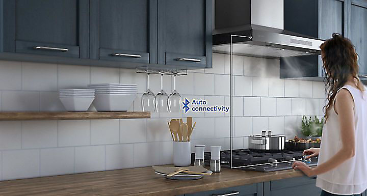Automatically syncs the fan and the lights with the burners through Bluetooth. Auto Connectivity* aligns the hood and cooktop's status so you can control the hood using the one-touch control of the cooktop, instantly turning them both ‘On' or ‘Off', for the ultimate in cooking convenience.