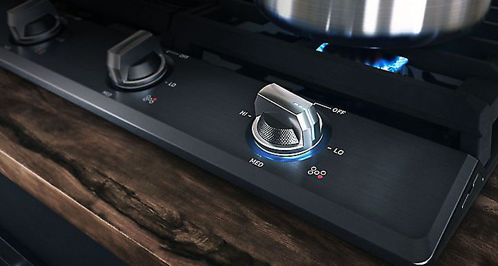 With the brilliant and intuitive Illuminated Knob you can easily check whether you have left the cooktop on even from a distance. Large, ergonomic metallic knobs also enable simple and precise temperature control.