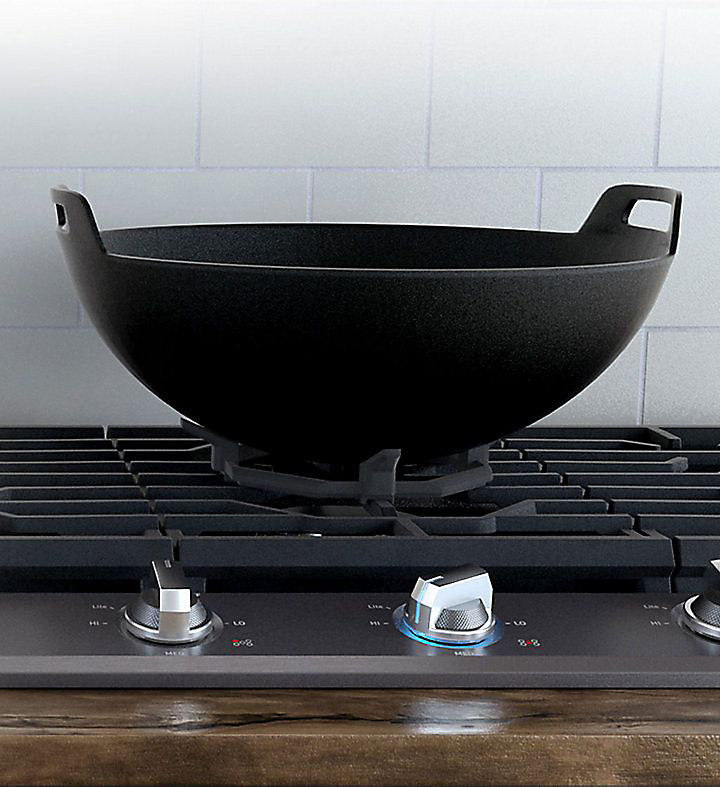 A specially designed Wok Grate lets you cook more efficiently and more safely. Its circular design fits snugly around the burner, so your wok or large pans are kept stable and heat is quickly and evenly distributed.