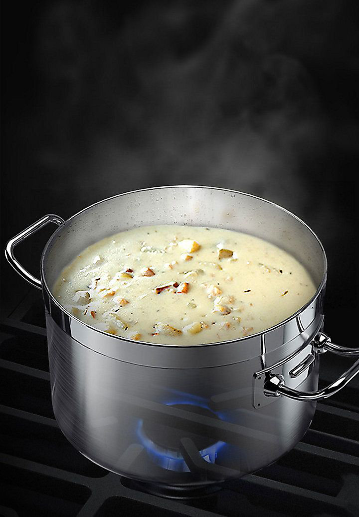 A Precise 5K BTU Simmer Burner ensures the cooking temperature stays low. With precise control it provides optimum conditions for gently simmering, melting or keeping delicate food warm without it burning.