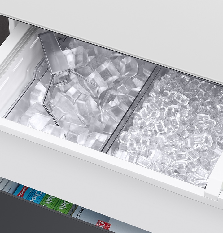 Make sure you are always prepared for any occasion with two different types of ice. The Dual Auto Ice Maker makes both Cubed Ice and Ice Bites, which chill drinks much faster. It can make 5.3lbs of ice a day and store up to 9.9lbs*. And, as it’s in the freezer, it frees-up space in the fridge.