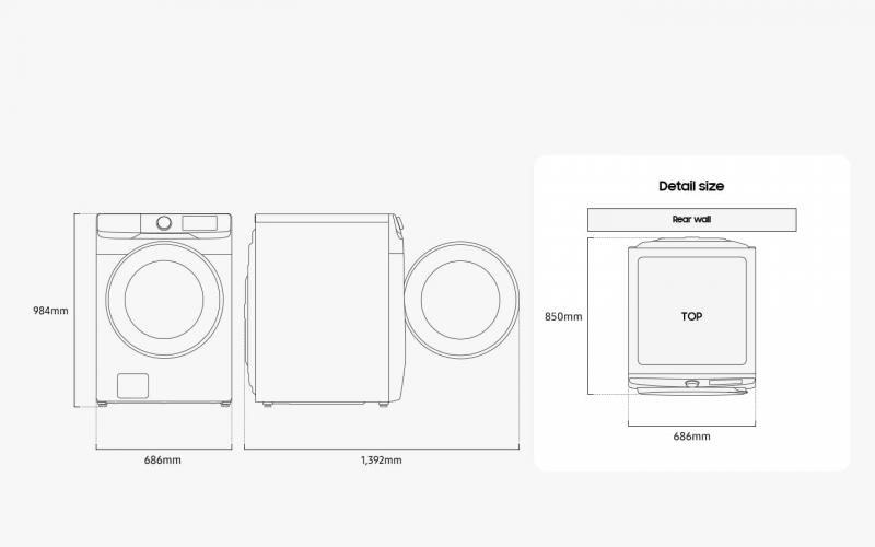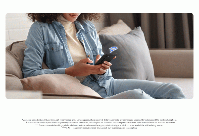 * Requires Samsung Smart Washer/Dryer App. The Samsung Smart Washer/Dryer App supports Android OS 2.3.6 or later and iOS 3 or later for iPhone models. Samsung Smart Washer/Dryer App available in App Store and Play Store.