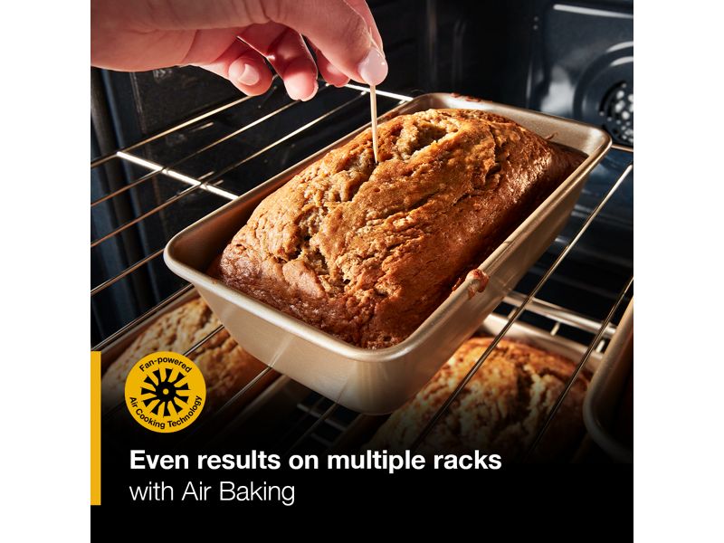 Go from gooey to golden and get even results when baking on multiple racks with Air Baking. Our high-speed fan optimizes air flow and drives consistent heat throughout the oven. Get golden results on breads, pastries and more.