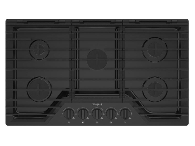 36" Whirlpool Gas Cooktop with EZ-2-Lift Hinged Cast-Iron Grates - WCGK5036PB