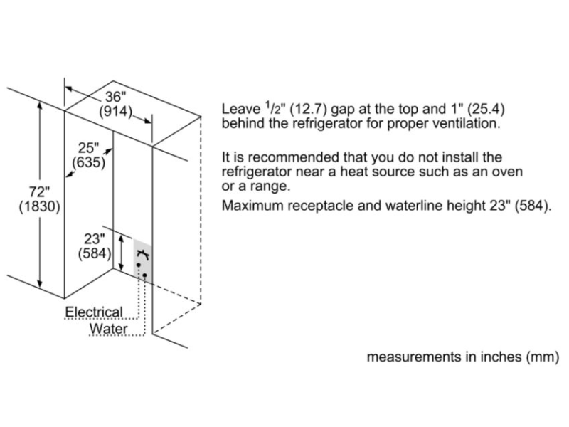 | Required cutout size (HxWxD) (in) | 72 IN x 36 IN x 25 IN |