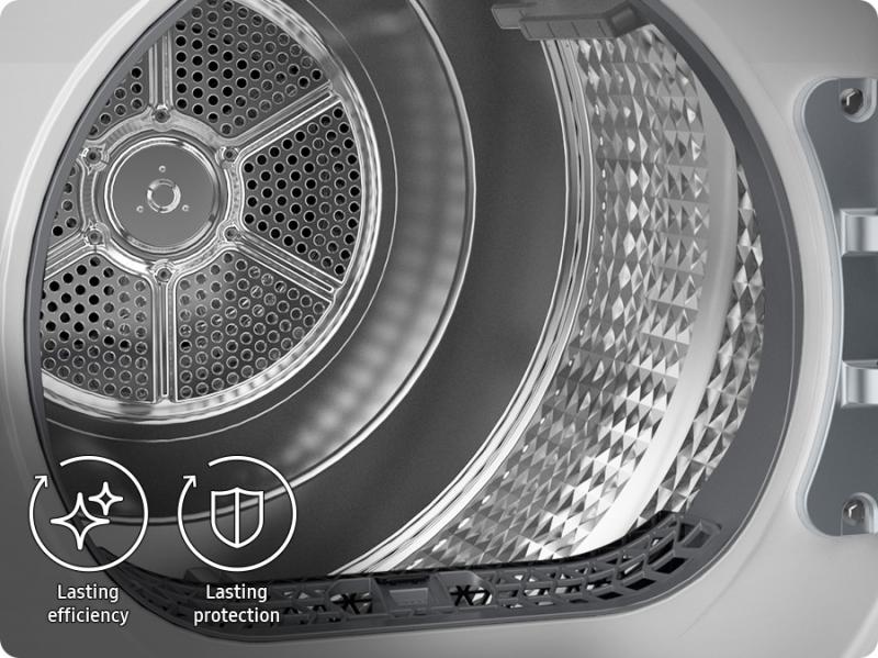 Keep the inside of your dryer fresh. The Self Dry feature uses high temperature hot air to dry out any moisture left inside the dryer after it has been used. It automatically notifies you when it needs drying to keep the inside of your washing machine dry*.