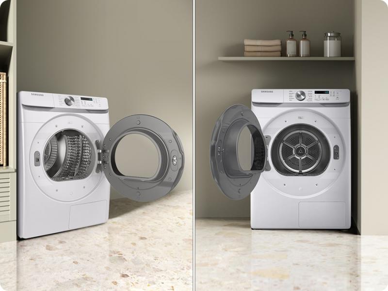 Dry many laundry items at once. The washing machine has a large capacity of 7.5 cubic feet, so you can fit lots of clothes into a single load.
