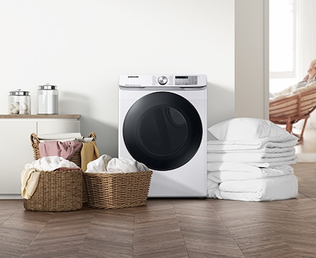 Give your home a sleek and modern look with a seamless design. This dryer has a shallow depth*, so it fits within your existing laundry space without sacrificing any capacity thanks to our new, wider drum. Also, a new control panel design provides better visibility, so it is easy to use even when stacked.