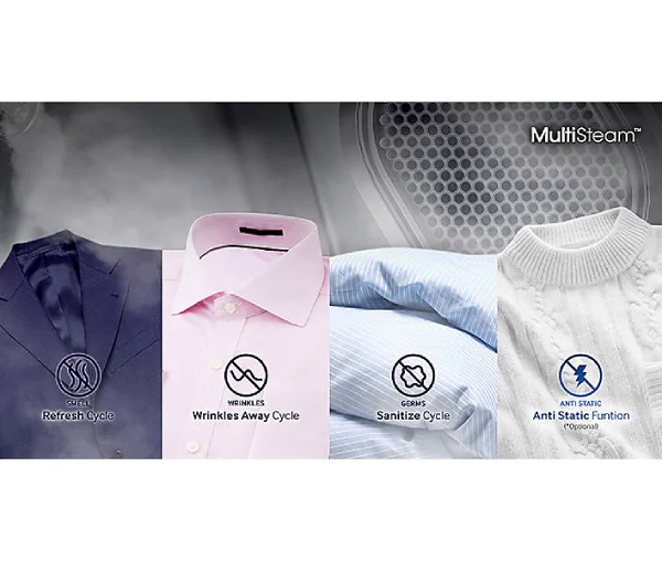 Uses the power of steam to keep clothes looking and smelling great. MultiSteam™ Technology freshens and sanitizes garments, reduces odors and static, and relaxes wrinkles in clothes, so they need less ironing.