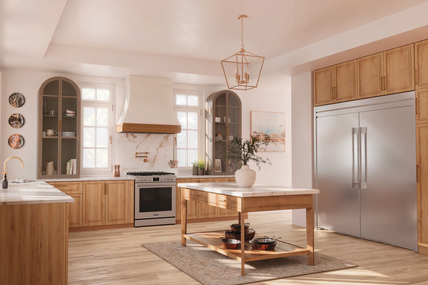 The flexible six burner cooktop includes our powerful 18,000 BTU EvenTemp® burner and features an integrated cast iron griddle.