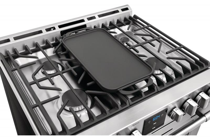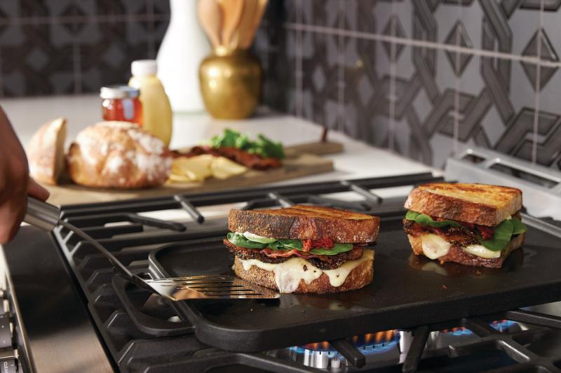 Immediately begin making your family's favorite meals, like pancakes or quesadillas, on the center oval burner because the griddle pan comes included with the range.
