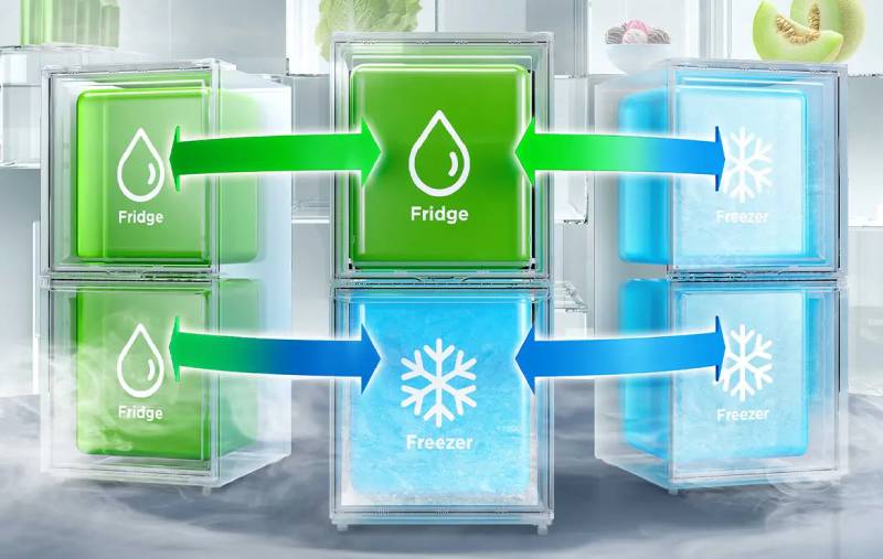 Ensure your family enjoys food that remains fresher for an extended period with our powerful Smart+ Cooling System. This advanced system utilizes multiple sensors to precisely analyze and fine-tune temperatures, effectively preserving the quality and taste of your food.