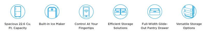 - Monitor and control your fridge from anywhere, at any time through its built-in Wi-Fi connectivity.