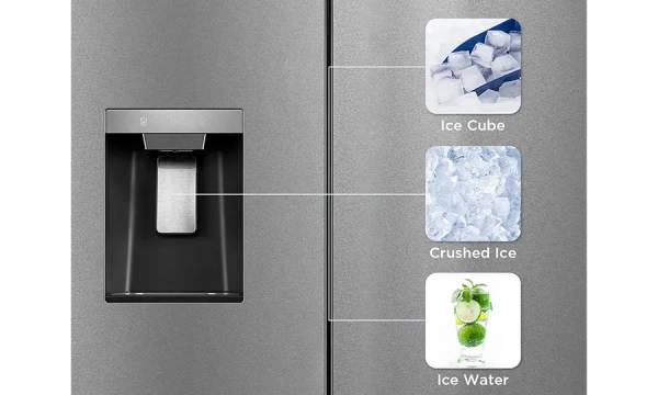 Stay refreshed with our convenient ice and water dispenser, offering easy access to cold, refreshing water and your choice of cubed or crushed ice. Whether you're making iced coffees, cocktails or simply want a refreshing glass of water on a hot day, it's conveniently within reach.